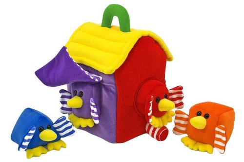 Melissa & Doug Bird House Shape Sorter Each of the four different shaped birds that live in this house rattles, jingles, squeaks or crinkles, and can be sorted by shape or color! Every side of this peek-a-boo birdhouse features a window that is home to one of these velvety birds. With a bright yellow roof, brilliantly colored walls and a handle, this house is made of high quality soft fabric for fun at home or on the go. Measures: 14.5 x 10 x 9.5 inches Recommended Ages: 9 months & up Readmore .. .